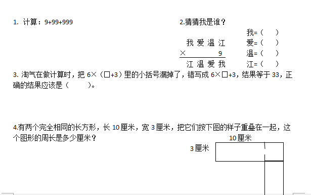 (1)你画的长方形( )cm,宽( )cm,周长( )cm,列式: _____________________。