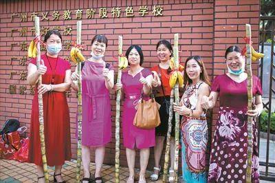 广州妈妈团在开考前拿着香蕉和甘蔗,这不是啥行为艺术。而是粤语“今蕉(朝)掂过碌蔗”的谐音。“掂过碌蔗”是一句粤语俚语,意思就是一切顺利。在甘蔗上绑着金黄色的香蕉,“金蕉”是粤语谐音”今朝”,也就是今天的意思,合在一起就寓意“今天一切顺利。”