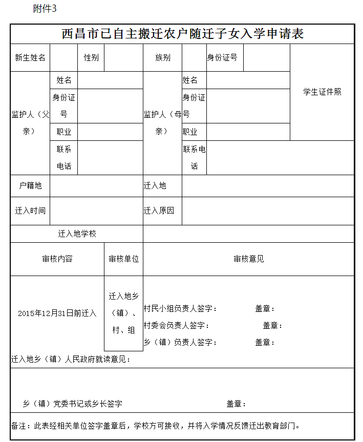 西昌市已自主搬迁农户随迁子女入学申请表模板(附下载地址)