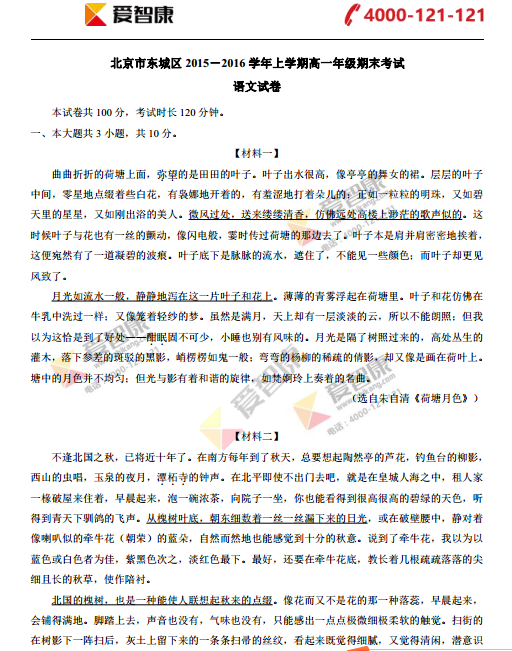 北京市东城区2015-2016学年高一上学期期末诊断语文试题答案及解析为大家介绍好了,如果同学们在高中期末诊断准备中还有什么问题的话,请直接拨打智康网高中频道免费咨询电话:4000-121-121,会有专业的高中权威老师为您解答!