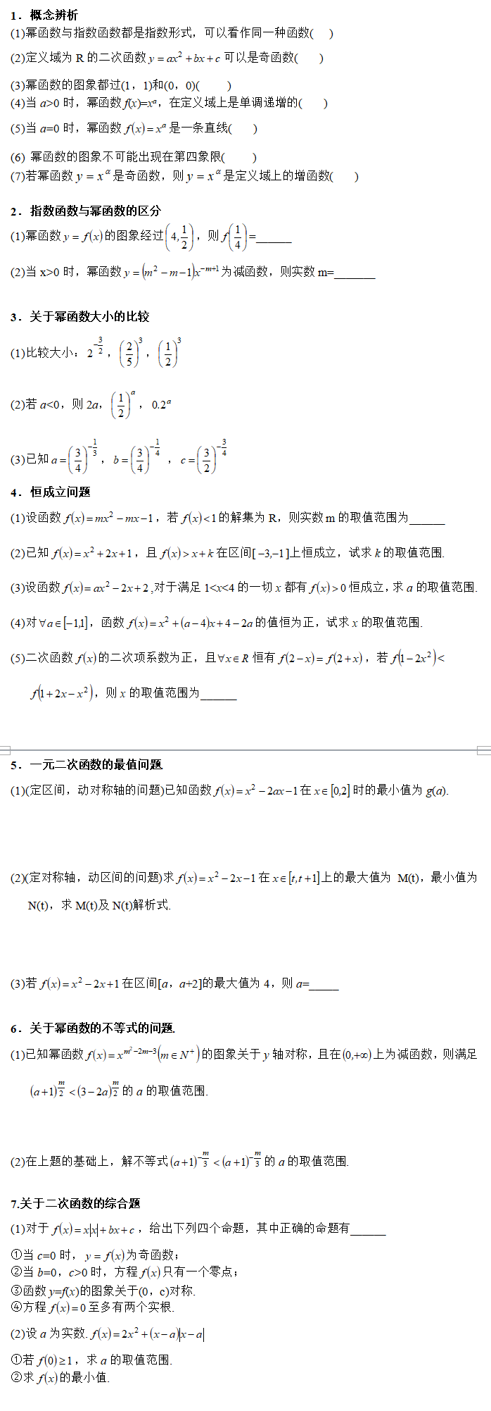二次函数与幂函数知识点整合
