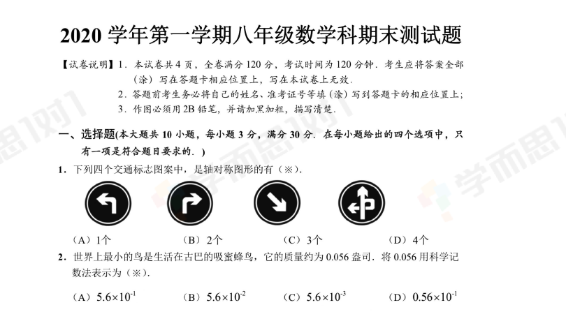 以上是2020至2021学年广州番禺区初二上学期期末数学试卷及答案,希望能够帮到大家解决学习上的各种问题和疑问,我们提供1对1/8人班等各类型的学习辅导服务,致力于帮助孩子改良学习方法、取得进步,咨询电话4000-121-121