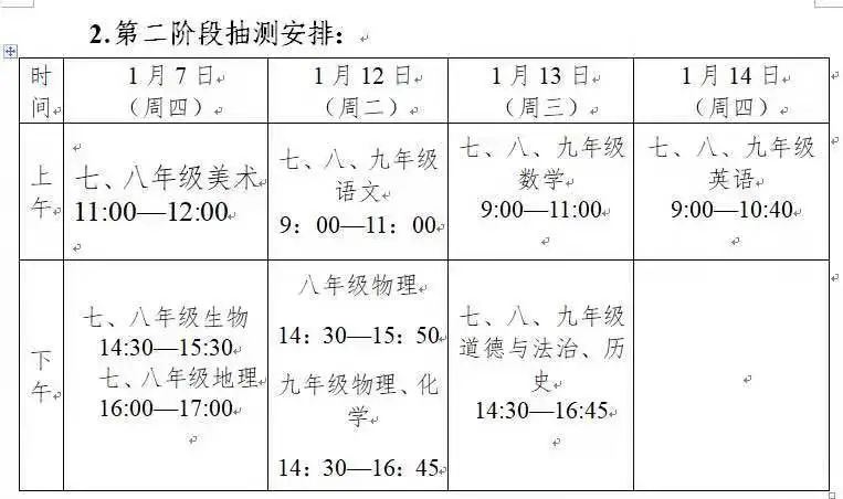 天河初中期末考时间安排在1月13-14日,上午两科,下午根据新中考政策,按照分卷合考进行。