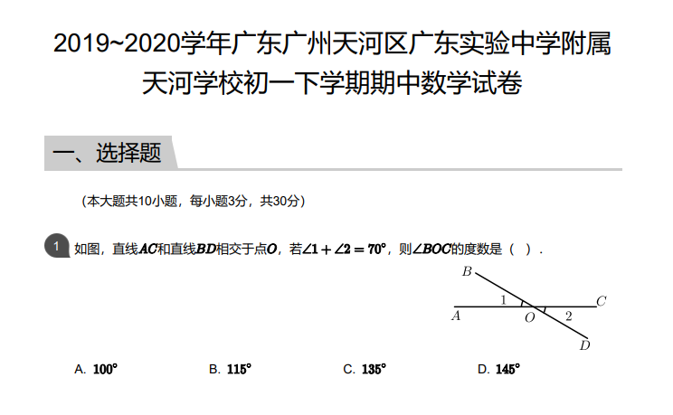 以上内容即是小编整理的2019_2020学年广东广州天河区广东实验中学附属天河学校初一下学期期中数学试卷及答案,如需更多资料点击链接可获取。