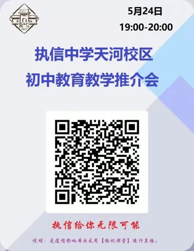 3、5月24日晚上19:00-20:00欢迎扫码关注“执信中学天河校区初中教育教学推介会”