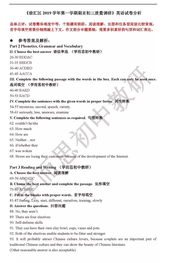 2020年上海徐汇区初三一模英语试题及答案(10)